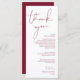 Minimalism Burgundy Script Place Setting Thank You Program