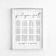 Minimalist downloadable wedding seating chart poster for up to 12 tables featuring "find your seat" in a chic script, the table numbers and names of your guests in simple modern typography and your names and wedding date in elegant serif typography. The digital download option allows you to edit with last minute changes and print locally.