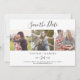 This minimalist 3 photo template save the date card is perfect for a simple wedding. The modern romantic design features classic black and white typography paired with a rustic yet elegant calligraphy with vintage hand lettered style. Customizable in any color. Keep the design simple and elegant, as is, or personalize it by adding your own graphics and artwork.