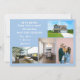 Minimalist, elegant, trendy moving announcement card with 4 custom photos, the names of family members, and the text "We've Moved! Come visit us soon!" + the new address and landline phone number on the front for you to personalize. Modern, chic powder blue background with white writing.