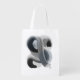 A sleek and clean minimalist abstract artwork on a reusable grocery bag.