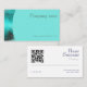 Cool, minimalist QR code business card design. It's got this abstract pattern thing going on, super clean and simple. The colors are all turquoise-y – like, a chill green and a soft light blue, which is really nice to look at. This card is perfect if you're a small business owner, like a hairstylist, designer, or makeup artist. The QR code makes it easy to share your info and links, great for meeting people and getting clients in the beauty and design world. It's simple, stylish, and makes you look professional right off the bat.