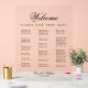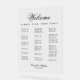 A simple but elegant transparent alphabetical seating chart with 3 columns, recommended for a minimalist wedding. The title "Welcome" above and the names of the bride and groom below are written in an elegant calligraphy, the rest in caps. All text is black.