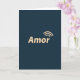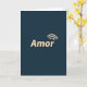 This greeting card centers on the word “Amor” in a soft cream color against a deep midnight blue background. The letters look smooth and modern, with a simple, even stroke that’s easy to read. Just to the right of the “r,” there’s a small symbol made of three curved lines, like a Wi‑Fi signal, also in the same cream shade. The dark blue space around everything keeps the focus on the word and the little signal mark, making it feel calm and intimate. Since “Amor” means love, the design quietly suggests love that reaches out and stays connected, even when you’re apart 🥰. It’s a meaningful card to give to a partner or a close friend because it says a lot with very little, and it feels steady and sincere ❤️. Share it to help someone feel loved and remembered this Valentine’s Day.