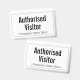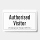 This minimalist badge design features the message "Authorised Visitor", and a customizable company name or other custom message. It also features a double-line border. A badge like this could perhaps be used to indicate that a person is a known and authorized guest or visitor at a business or workplace. [~Z0000307]