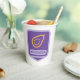 Minimalist Avocado Badge in Purple and Gold Paper Cups