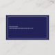 Basic and effective dark-blue contact-card with fields for name, profession and address... minimalist design for a real estate broker or any other professional, following the concept "less is more"