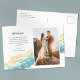 Summer wedding thank you postcards featuring a simple white background, a watercolor beach palette design, a photo from your wedding day, and a personalized thank you note.