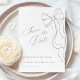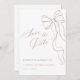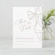 Announce your special day with timeless simplicity. This minimalist Save the Date card features a delicate beige bow illustration and elegant script typography. Its neutral tones and clean design make it perfect for modern, sophisticated couples who love understated elegance.