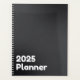 Stylish minimalist black 2025 daily planner to keep you organized and on track all year.