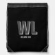 Minimalist Black and Grey Personalized Monogram Drawstring Bag