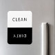 Modern minimalist black and white dishwasher clean or dirty magnet for indicating dishes in home kitchen.