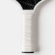 This modern pickleball paddle design features a black background with white lace design, with your name in bold white text for a look that is simple and stylish, yet professional.