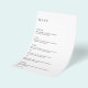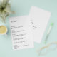 Elegant black and white budget wedding menu (printed on thin flyer paper) featuring a simple and minimal layout. The left alignment gives this classic wedding menu a modern element. A minimal design that is great whether you are having a casual or a traditional / formal wedding.