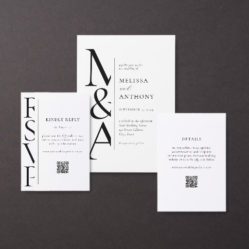 Create your own wedding RSVP cards featuring bold modern typography in black and white color.