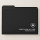 Modern monogram design with simple white monogram medallion with personalized name and title below on a sleek black background. Personalize for your custom use.