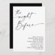 Plain white envelopes are included with paper invitations and will come to fit the invitation size you select. If you don’t need the envelopes, you may choose to not receive them by selecting the dropdown below "Envelopes" and choosing "None." If you’d like to have a design on your envelopes, you can browse all of these available envelopes to find the design that complements your Minimalist Black And White Rehearsal Dinner Invitation.