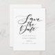 Minimalist Black and White Script Save the Date Postcard