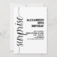 Minimalist black and white surprise birthday invitation