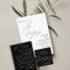 Plain white envelopes are included with paper invitations and will come to fit the invitation size you select. If you don’t need the envelopes, you may choose to not receive them by selecting the dropdown below "Envelopes" and choosing "None." If you’d like to have a design on your envelopes, you can browse all of these available envelopes to find the design that complements your Minimalist Black And White Wedding Invitation.