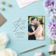 Announce your upcoming wedding in style with our Elegant Minimalist Calligraphy photo save the dates. The save the date cards feature "Save the Date" in an elegant black calligraphy script with a frosted or transparent acrylic background. Personalize the acrylic save the date with your names, wedding date, location, & vertical engagement photo.
