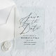 Announce your big day in style with our Minimalist Black Calligraphy Wedding Save the Date. Featuring "Save the Date" in elegant black calligraphy, this chic design is set against a transparent acrylic background, offering a modern yet timeless aesthetic. Perfect for weddings in any season, these acrylic save the date cards are fully customizable with your names, wedding date, and location to make them uniquely yours. The minimalist design complements a variety of wedding themes, from classic and formal to contemporary and casual. Add a touch of sophistication to your wedding announcements with these sleek, high-quality acrylic cards that leave a lasting impression. Start personalizing today to set the tone for your unforgettable celebration!