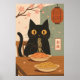 Minimalist Black Cat Eating Spaghetti Japanese Art Poster