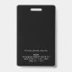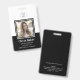 This modern black vertical badge can be customized with your your employee photo and name. You can also add custom text for employee ID number, role, location and more. The backside of the badge features your contact information and instructions for returning if found. Upload your business logo at the top for a completely unique badge. This versatile design can fit any company.