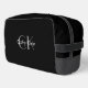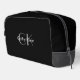 Stay organized with this sleek black toiletry bag featuring a minimalist design that can be customized with your name and initials. Perfect for travel, gym essentials, or everyday use, this versatile bag combines timeless style with practical functionality. Personalize it to make it uniquely yours or gift it to someone special for a sophisticated and practical accessory.