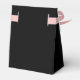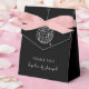 These trendy yet elegant black wedding or bridal shower favor boxes feature a modern and minimalist style, with handwritten script and classic text. A retro hand-drawn disco ball is featured in a subtle illustration.