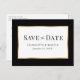 Elegant black and gold wedding save the date postcard featuring wedding details inside a gold frame. Matching items available.