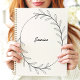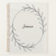 This elegant design features a minimalist black line-drawn wreath of delicate leaves encircling a customizable name in a stylish script. The clean and modern aesthetic makes it perfect for professionals, students, or anyone who appreciates simple and sophisticated designs. Ideal for organizing tasks, journaling, or planning with a touch of understated charm. A timeless design combining functionality and beauty.