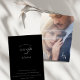 Announce your special day with our Minimalist Black Simple Script Photo Wedding Invitation. This elegant and modern design combines classic chic with a clean, black script, perfect for your stylish celebration. Complete your suite with matching "Save the Date" cards, RSVP cards, and "Thank You" notes, each designed to maintain the same sophisticated simplicity. Personalize your invitation with a photo to create a timeless keepsake for your guests.
