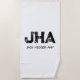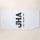 MINIMALIST BLACK THREE LETTER MONOGRAM NAME WHITE BEACH TOWEL