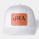 Custom Leather Patch Hat, Sytle: Adult Retro Trucker Cap, Color: Heather / Black, Shape: Circle