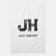 MINIMALIST BLACK TWO LETTER MONOGRAM NAME WHITE KITCHEN TOWEL