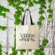 This "Vegan AF" tote bag features a minimalist black lettering with leaves.