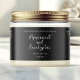 A waterproof label for cosmetics and/or soap products with a black background and white text. Customize it with your business and product information. This label measures 8.25 inches by 1.75 inches (209 mm by 44 mm) and is suitable for jars with a diameter of 2.6 inches (66 mm) or more and a label height area of at least 2 inches (50mm). Most 8 oz (240 ml) and 16 oz (480 ml) jars fit this description, but check the jar specifications to be sure. This label makes a great choice for packaging beauty products that require larger labels like sugar scrubs, body butters, and thick lotions and creams.