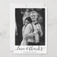 it was a beautiful day made more special by friends and family being at your big day. Thank them for attending your wedding with this simple minimalist botanical thank you card. The card can be customised with the inclusion of your names, message and photo. The back of the card features a pretty and minimalist botanical drawing. TIP: There is a black and white filter in use so any photo you upload will appear in black and white. If you prefer not to have this then choose the edit option tool, go to filters and choose 'none.'