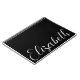 Lovely, modern black background accents a white script font, lending minimal elegance to school or work essentials. Make it truly unique by adding a name, subject or title.