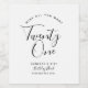 Minimalist "Twenty One - Wine All You Want" wine bottle label in simple black and white with modern, chic and elegant handwriting typography style. All text is customisable. Personalise with age, name, year of birth, and short greetings. Perfect 21st birthday gift or party favor.