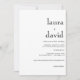 Plain white envelopes are included with paper invitations and will come to fit the invitation size you select. If you don’t need the envelopes, you may choose to not receive them by selecting the dropdown below "Envelopes" and choosing "None." If you’d like to have a design on your envelopes, you can browse all of these available envelopes to find the design that complements your Minimalist Black White Wedding Invitation.