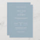 Plain white envelopes are included with paper invitations and will come to fit the invitation size you select. If you don’t need the envelopes, you may choose to not receive them by selecting the dropdown below "Envelopes" and choosing "None." If you’d like to have a design on your envelopes, you can browse all of these available envelopes to find the design that complements your Minimalist Blue And Cream Wedding Invitation.