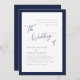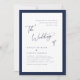 Plain white envelopes are included with paper invitations and will come to fit the invitation size you select. If you don’t need the envelopes, you may choose to not receive them by selecting the dropdown below "Envelopes" and choosing "None." If you’d like to have a design on your envelopes, you can browse all of these available envelopes to find the design that complements your Minimalist Blue Elegant Script Wedding Invitation.
