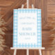 Minimalist Blue Plaid Baby Shower Welcome Sign