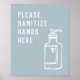 Minimalist Blue Sanitize Hands Here Poster