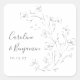 Minimalist Boho Black White Floral Art Wedding Square Sticker