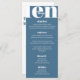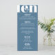 Dual-Sided Design: The front side, with its blue background and white text, provides a clean and minimalist appearance. Flip to the back for essential details like the names of the bride and groom, venue address, and event time, elegantly presented on a white background with pastel blue text.