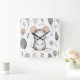 Minimalist Boho Cute Mouse Leaf Nursery Kids Room Square Wall Clock