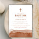 Minimalist Boho Watercolor Terracotta Boy Baptism Invitation